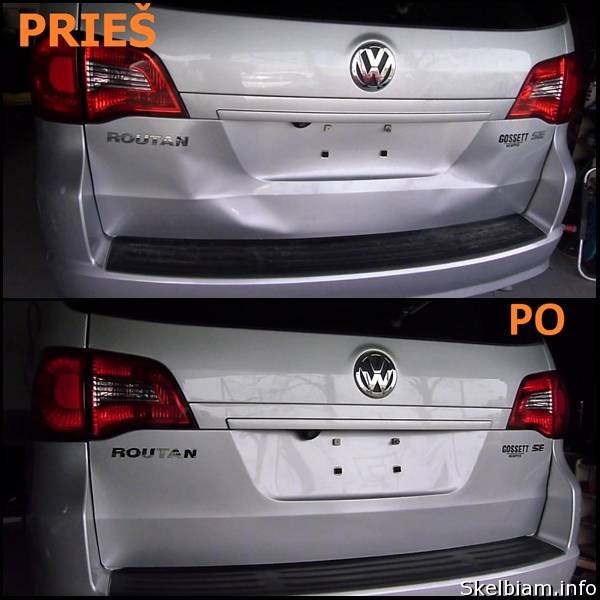 be glaistymo,gruntavimo,šlifavimo ir dažymo darbų.Automobiliniai gamykliniai dažai nebus pažeisti,ir tai padės išsaugoti automobilio vertę. Tiesinimo darbai Jums kainuos žymiai pigiau nei atliekant tradicinius dažymo darbus. Taip pat nebus rizikos,kad bus neteisingai parinkti automobilio dažai.Galerijoje pateikiame keletą nuotraukų,kaip automobilis atrodo prieš ir po remonto. Tel.: +37060793120 www.autobrolis.lt