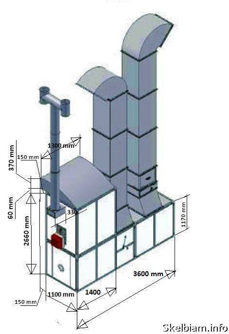 - el. variklis po 5, 5 kW; - ventiliatorių sukuriamas oro srautas 20 000 m3/h, sukeliamas slėgis 815 Pa; Oro ištraukimo agregatas: - el. variklis 5, 5 kW; - ventiliatoriaus sukuriamas oro srautas 20 000 m3/h, sukeliamas slėgis 815 Pa; Šildymo sistema: - dyzelinio kuro degiklis RIELLO G20, Italija kurio šiluminė galia 213 kW - Nerūdijančio plieno šilumokaitis, max. temperatūra - 80 °C, įšilimo laikas 4-6 min (20-60 °C) , apie 4-6 kg./val. Pusiau automatinė valdymo panelė: - programuojamas mikroprocesorius; - variklių, degiklio, apšvietimo įjungimas išjungimas; dažymo arba džiovinimo fazės įjungimas išjungimas; avariniai stabdžiai, pavojaus įspėjamieji signalai. Komplekte: - Оro paėmimo ir išmetimo generatorių kanalų pajungimo flanšai, dūmų išmetimo kamino pajungimo flanšas; - 1 metras oro paėmimo kanalo ir 90 ° kampo alkūnė; - 1 metras oro išmetimo kanalo ir 90 ° kampo alkūnė; - 2 metrai dūmų išmetimo kamino iš cinkuoto plieno Ø 180 mm. Atvežimas, sumontavimas-paleidimas, garantijos. Kaina 10 500,00 EUR + PVM. Kaina: 10500 EUR