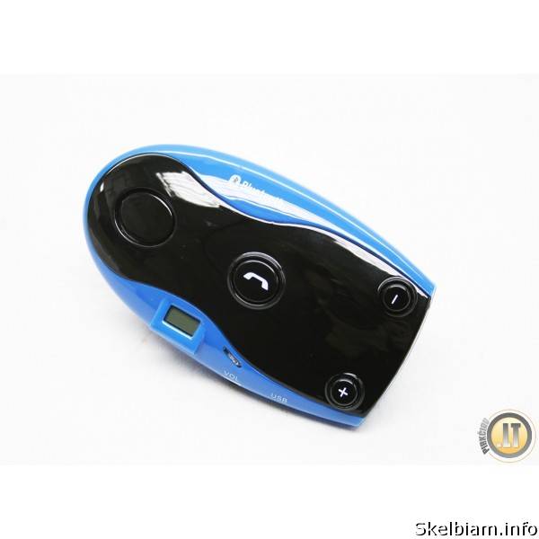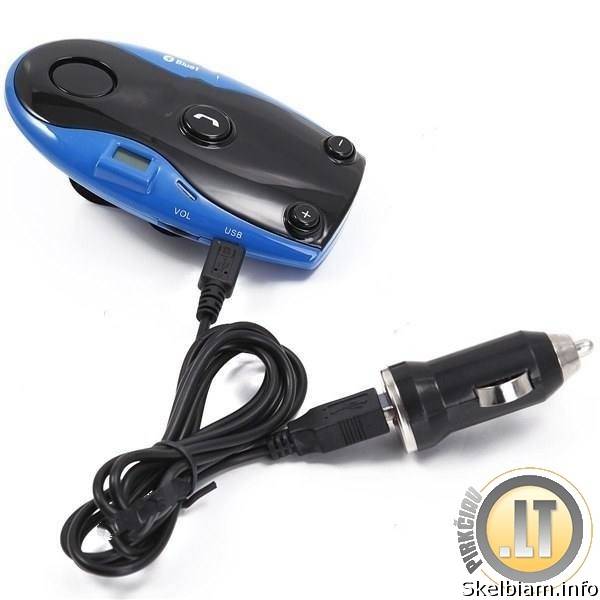 Galima susieti iki 8 telefonų; PRISTATYMAS VISOJE LIETUVOJE; Kaina: 32 Stilinga, komforto klasės bluetooth, laisvųjų rankų įranga, patogiam ir nevaržomam bendravimui vairuojant. Įtaisas yra nedidelis, gražaus dizaino, tvirtinamas prie saulės skydelio. Įkraunamas nuo 12V. Vos vienu mygtuko paspaudimu atsiliepsite į skambutį. Šią laisvų rankų įrangą galima susieti net su 8 telefonais. Stilingo dizaino bluetooth galima rinktis iš dviejų spalvų mėlynos ir baltos. DAŽNIS: 2.4022.480GHz; TELEFONŲ ĮREBGININAI: galima prijungti iki 8 telefonų; ATSTUMAS: 0-10m BATERIJA: Kalbėjimas iki 8 val., budėjimas iki 500 val; FM SIŲSTUVAS: Integruotas; MIKROFONAS: Integruotas; GARSIAKALBIS: Integruotas; RINKIMAS BALSU: Yra; KALBOS: Anglų, rusų ir kitos; KOMPLEKTACIJA: Kroviklis, USB laidas, pakuotė; GARANTIJA: 12 mėn. Mūsų siūlomas prekes galite pamatyti ir įsigyti: www.pirkciau.lt; Parduotuvėje: Vilniaus g. 230, Šiauliai; Susisiekite: El.p. info@pirkciau.lt; Skype: rego-gps;kirta patogiam Mob.: 863977277; Darbo laikas: I-V: 9-18 val., VI: 9-14 val. Kaina: 32 EUR