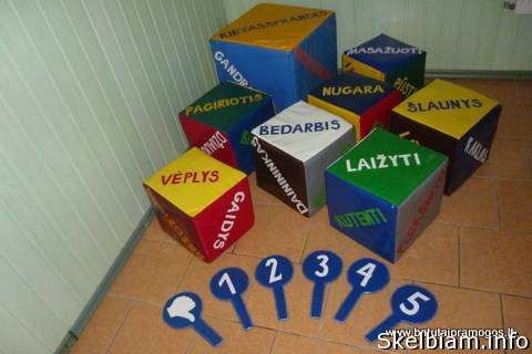 Įvairios šarados. Surenkite šventės dalyviams įvairias šaradas, linksmas užduotis, vaidinimus, spėliones. Šioms pramogoms siūlome nuomotis mūsų didelius kubikus-kauliukus, kuriuose surašytos atskiros profesijos, užduotys, gyvūnai, žodžiai, žmogaus kūno dalys (atskirai padaryta suaugusiems), emocijos ir būsenos. Šventės dalyviams reikės tik ridenti kubiką-kamuoliuką ir atlikti atsitiktinę užduotį kuo geriau.