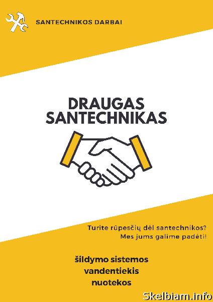 Sudomino? Turite klausimų arba norite plačiau sužinoti kokios teikiamos papildomos santechniko paslaugos? Užsukite į mūsų internetinę svetainę www.draugassantechnikas.lt arba susisiekite telefonu +370 612 85918 ir mes jums padėsime! Kaina: 1 EUR